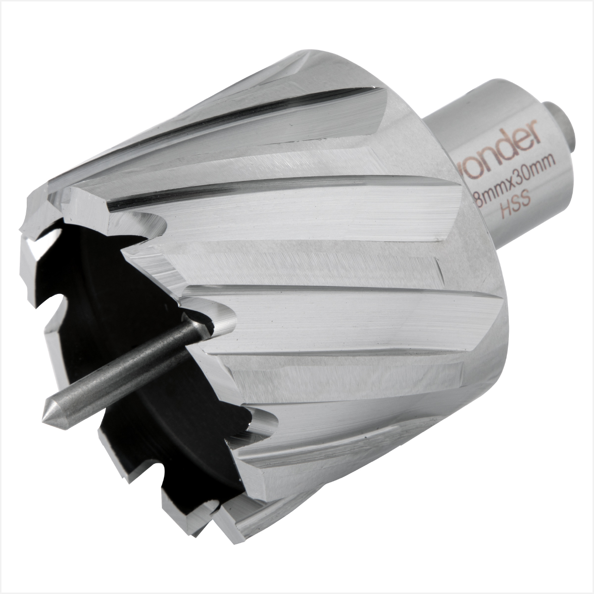 Indicada para metais, desenvolvida para furadeiras de base magnética. Não fazer furo guia. Utilizar o pino guia que tem a função de fazer o acionamento do óleo para refrigerar a broca. Centralizar o furo e tirar o tarugo de dentro da broca. Proporciona corte macio e com bom acabamento, o encaixe padrão Weldon (19 mm) garante perfeita fixação e segurança.