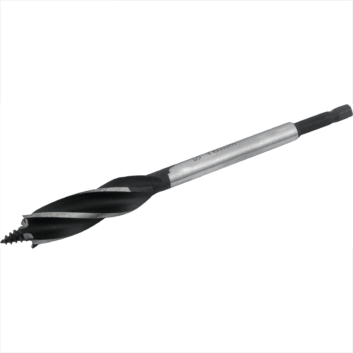 Indicada para realizar perfurações em madeiras e derivados. Possui encaixe sextavado de 1/4" - 6,35 mm. Possui 4 pontas de corte e haste com encaixe sextavado, além de guia roscada, proporcionando menor esforço e maior desempenho e eficiência na perfuração.
