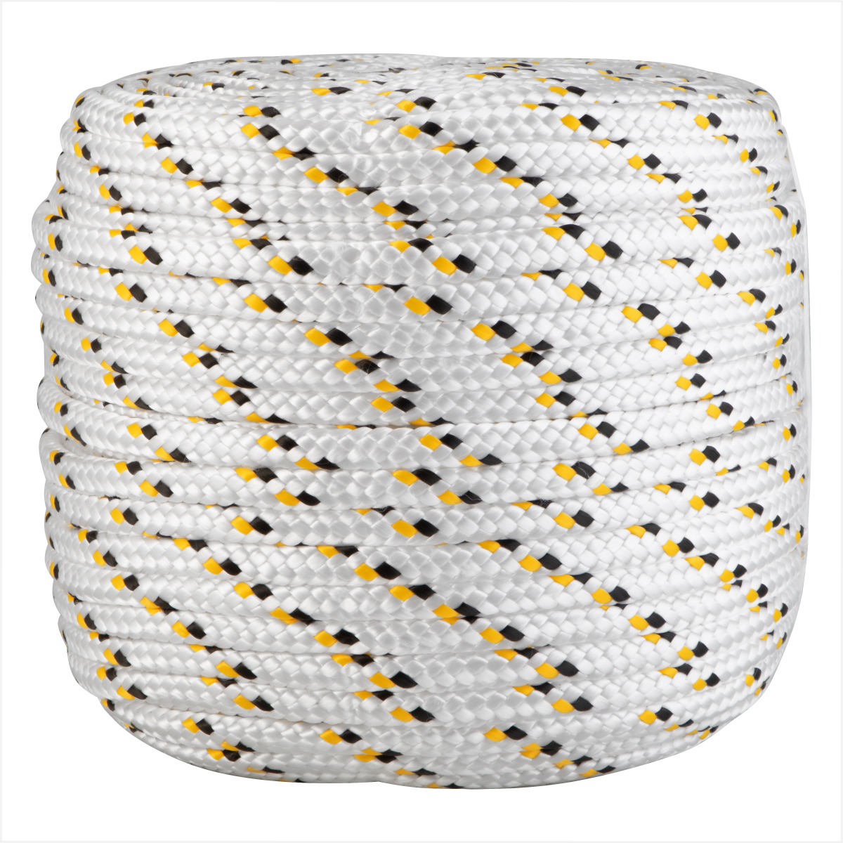 1x Corda multifilamento trançada 12,0 mm x 110 m branca detalhes preto e amarelo Vonder (8053121000)