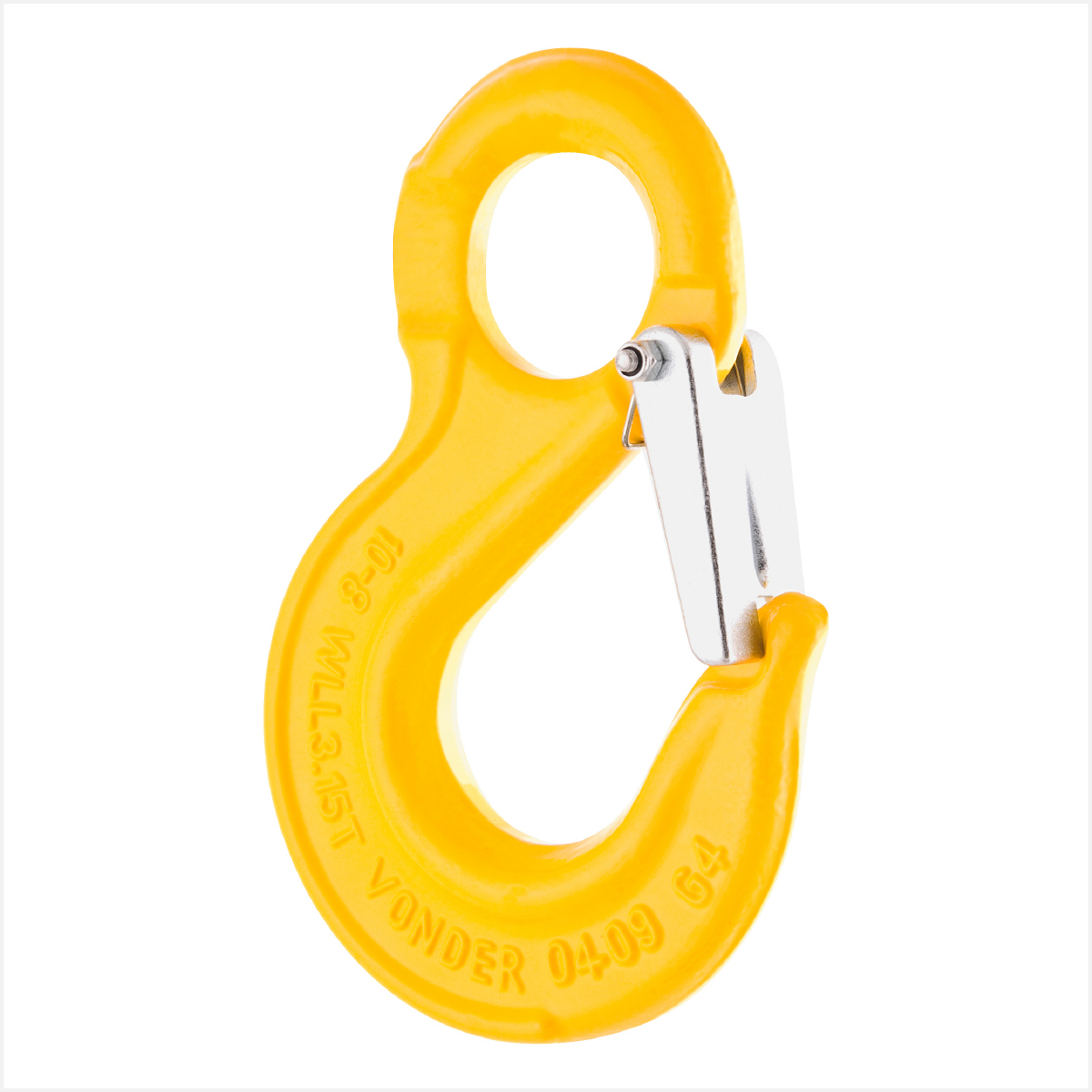 1x Gancho de aço com olhal 5,30 toneladas com trava grau 8 - Vonder Plus (3569100500)