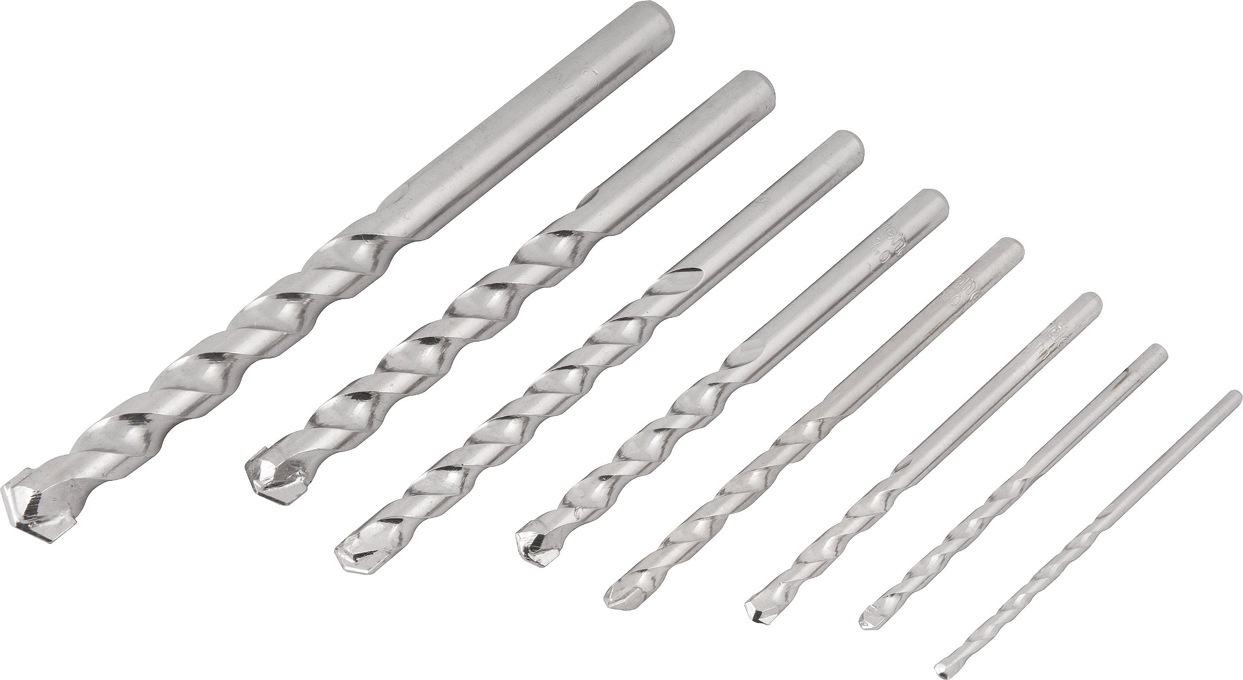 1x Kit de brocas para concreto com 8 peças, sendo: 3 mm, 4 mm, 5 mm, 6 mm, 7 mm, 8 mm, 10 mm e 12 mm. (5361003012)