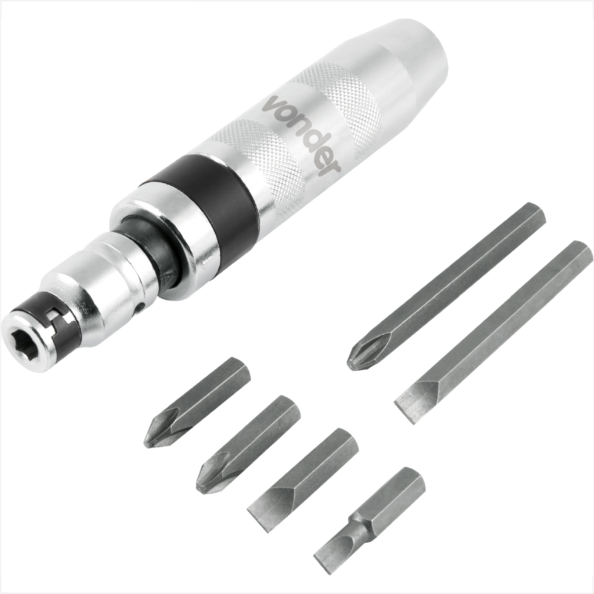 Indicado para soltar parafusos travados. Possui sistema de reversão (direito e esquerdo), permitindo soltar parafusos rosca direita ou esquerda. Bits em aço cromo vanádio, que proporciona maior resistência e durabilidade.