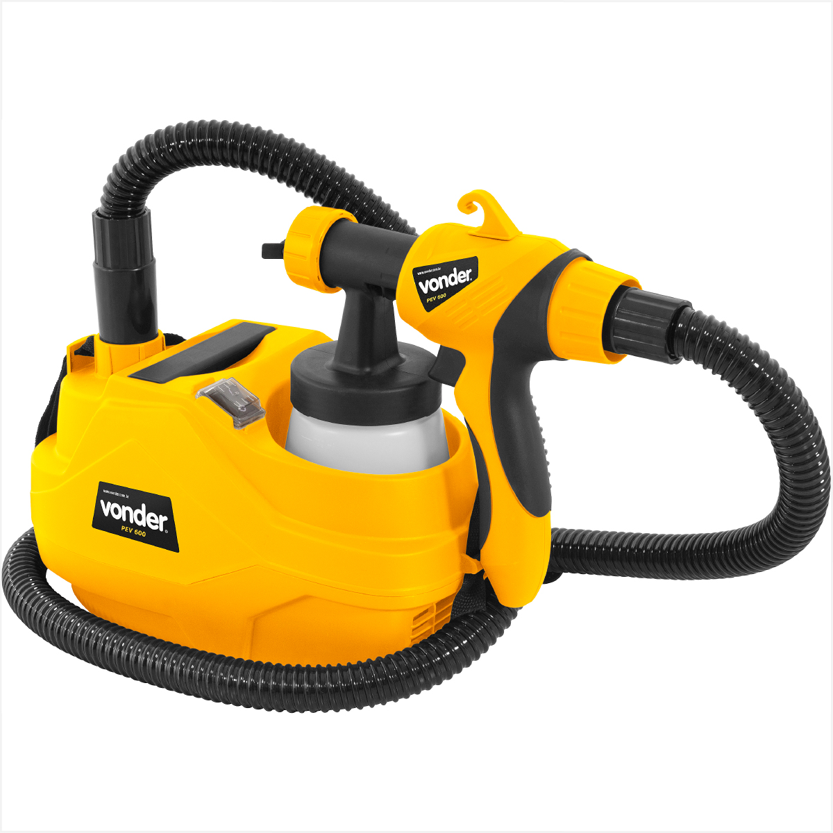 Possui corpo e caneca em plástico que proporcionam maior leveza à pistola. Seus principais benefícios são a mobilidade e a praticidade, pois dispensa o uso de compressores, reguladores, mangueiras extensas, entre outros acessórios ou equipamentos complementares. Possui jato com 3 opções de ajuste (vertical, horizontal e circular), chave de ajuste do volume de tinta e sistema HVLP (alto volume e baixa pressão), proporcionando maior rendimento e menor desperdício de tinta. Devido a forma construtiva deste modelo, em que o motor é separado da pistola, consegue-se maior mobilidade, proporcionando, principalmente, menor fadiga ao operador.