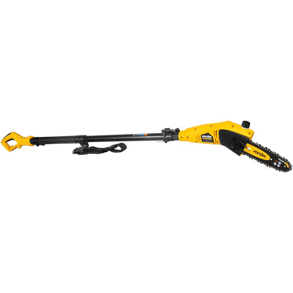 O Podador Elétrico Vonder p/ Galhos Arvores, possui haste telescópica que possibilita ao operador manusear o equipamento para cortar ramas e galhos em lugares altos, podendo chegar a uma distância de até 4 metros do solo (contando com o operador) e dispensando o uso de escadas. Possui válvula de segurança para extensão telescópica, guia de metal que garante cortes mais precisos e lubrificação automática da corrente com indicador de nível de óleo.
