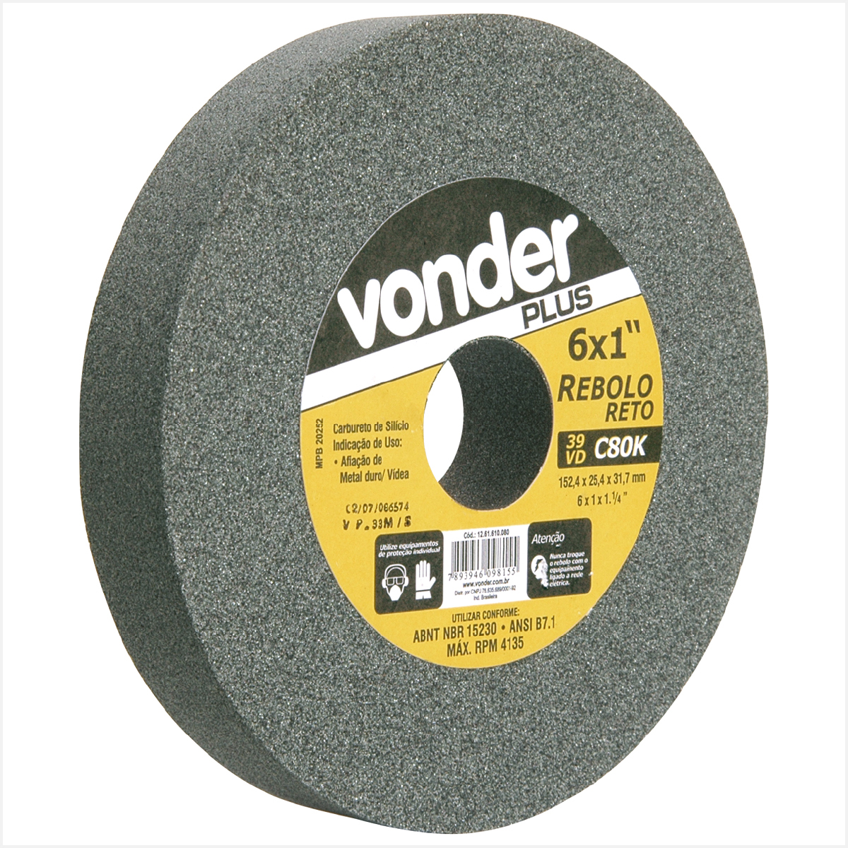 1x Rebolo reto 6" x 1" 39 CVD grão 100 verde - Vonder Plus (1261610100)