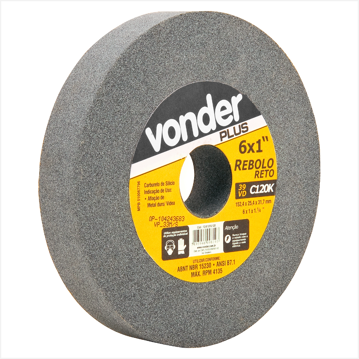 1x Rebolo reto 6" x 1" 39 CVD grão 120 verde - Vonder Plus (1261610120)